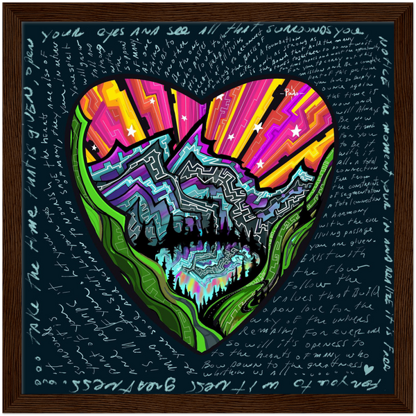 Mountain heart love words /Premium Matte Paper Wooden Framed Poster